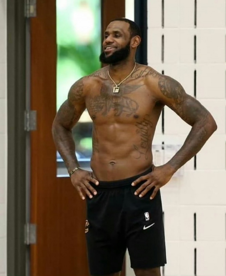下图为骑士时期的詹姆斯在训练馆内的照片: